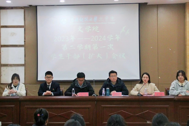 3月1日,2025年十大赌博app排行榜 在十教129报告厅召开20232024学年第二学期第一次学生干部大会,2025年十大赌博app排行榜 党委副书记郭沂出席,会议由团委书记骆维主持,学生会全体学生干部及各班班团参加。